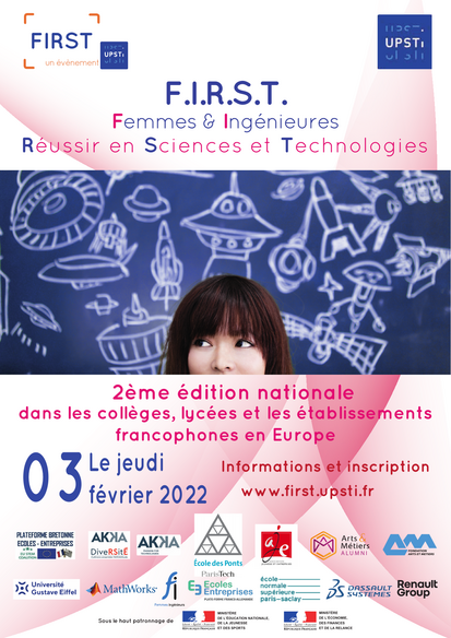 Jeudi 3 février 2022, les étudiantes et les doctorantes de la formation d'ingénieur de l'École nationale des ponts et chaussées participent à la 2e édition de Femmes & Ingénieures Réussir en Sciences et Technologies (FIRST). Soutenue par le Ministère de l'Économie, des Finances et de la Relance et le Ministère de l'Éducation Nationale de la Jeunesse et des Sports, après une première édition réussie malgré le contexte sanitaire, l’UPSTI lance cette seconde édition avec comme objectif la sensibilisation des collégiennes et des lycéennes aux carrières scientifiques et technologiques.