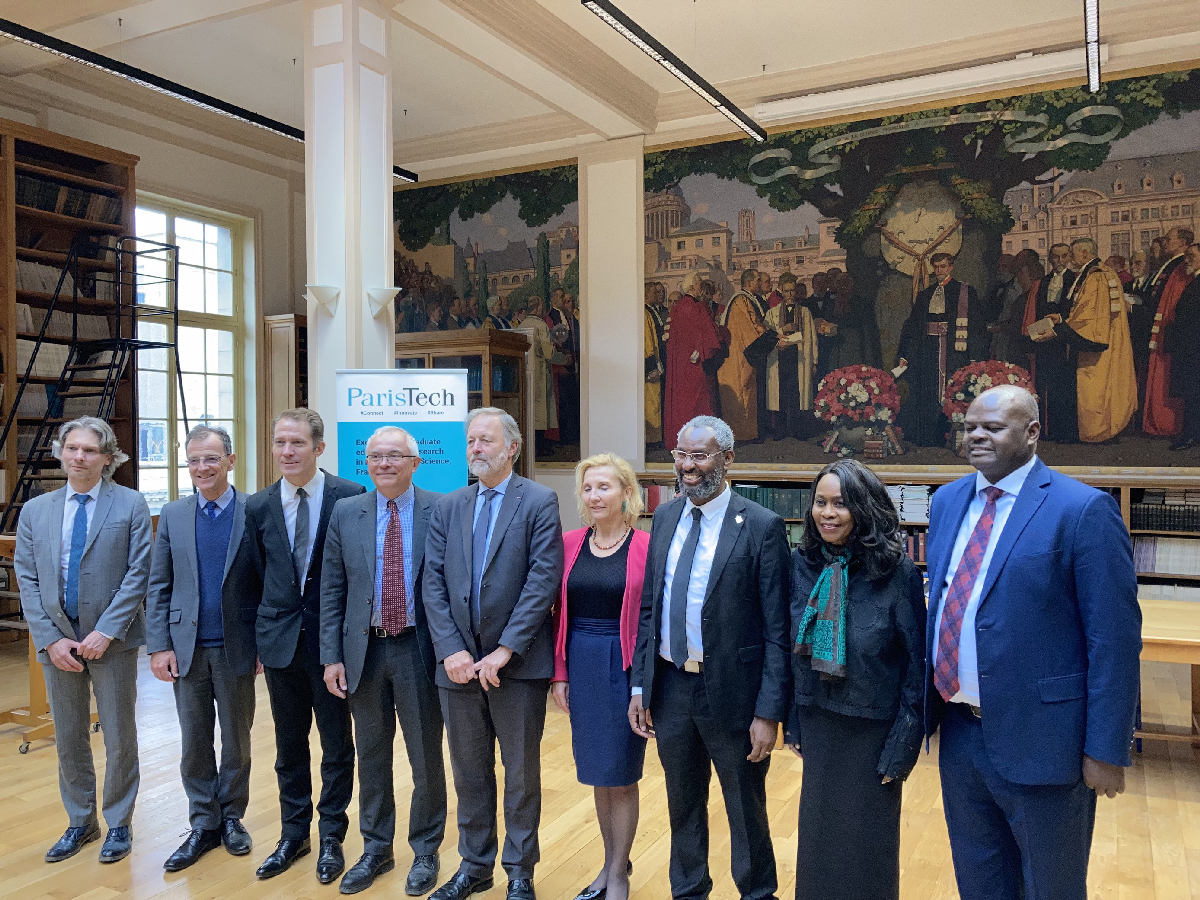 L’Université de Nairobi (Kenya), 4 écoles du réseau ParisTech (France) – AgroParisTech, Chimie ParisTech - PSL, École nationale des ponts et chaussées et Mines Paris - PSL – et CentraleSupélec - Université Paris-Saclay (France) ont signé un Accord de Partenariat Tripartite qui lance un programme de coopération de quatre ans dédié au développement du Complexe Science et Ingénierie (ESC) à Nairobi. Prof. Stephen Kiama, Vice-Chancelier de l’Université de Nairobi, a fait le voyage en France avec une équipe de managers à l’occasion de la signature et a visité respectivement CentraleSupélec, Université Paris-Saclay, AgroParisTech, Chimie ParisTech – PSL et École nationale des ponts et chaussées.