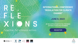 L'Institut Polytechnique de Paris organise la conférence Réflexions, visant à devenir un forum académique et scientifique de référence, contribuant à la compréhension et à la résolution des enjeux liés au changement climatique et plus largement à la transition durable. L'édition 2023 portera sur la régulation pour lutter contre le changement climatique.