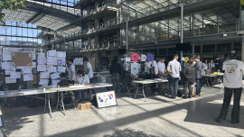 Hugo Philippe, Boris Guerrero Samame et Léo Garnaud, du pôle Ouverture Sociale de l'association Dévelop'Ponts, constituaient le jury d'élèves-ingénieurs qui a décerné le prix coup de cœur, à la suite de leurs différents échanges avec les équipes de chaque projet.