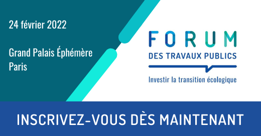 Retrouvez-nous ainsi que Pont Formation Conseil le 24 Février 2022 de 9h à 22h au Forum des Travaux Publics "Investir la transition écologique" au Grand Palais Éphémère à Paris.