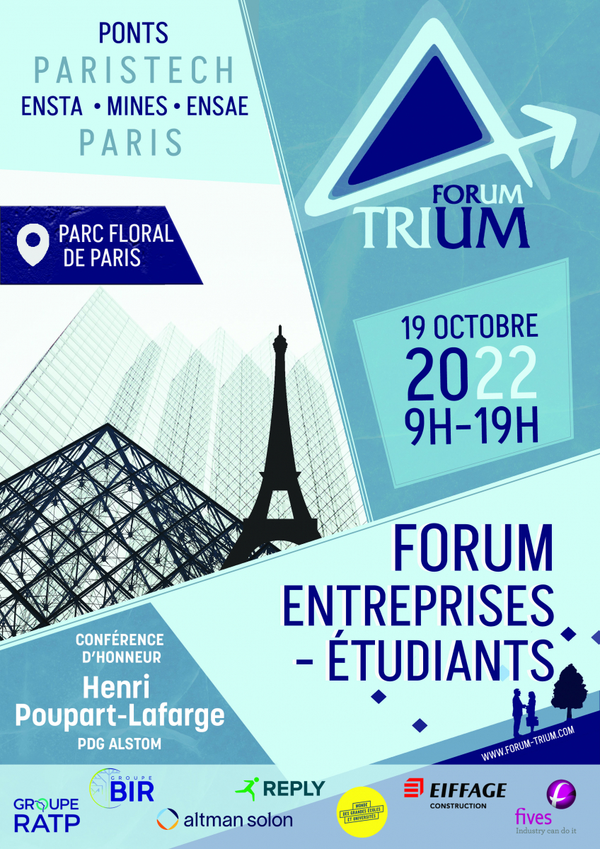 Le Forum Trium rassemble les entreprises intéressées par le profil des élèves de quatre des plus grandes écoles d’ingénieurs françaises : l'École nationale des ponts et chaussées, Mines Paris-PSL, l’ENSTA Paris et l’ENSAE Paris.