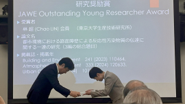 Chao Lin, Professeur adjoint au Ooka & Kikumoto Laboratory (Institute of Industrial Science, Université de Tokyo) a reçu le "Outstanding Young Researcher Award" du Japan Association for Wind Engineering (JAWE) pour ses travaux "A series of studies on the transport of reactive pollutants by road barriers in urban environments".