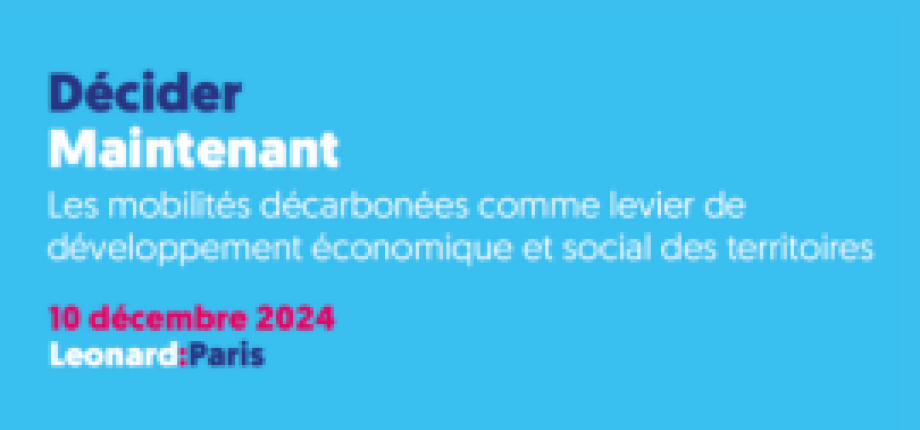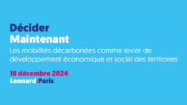 Le 2ème colloque de la série Décider Maintenant, Les mobilités décarbonées comme levier de développement économique et social des territoires, se déroulera :