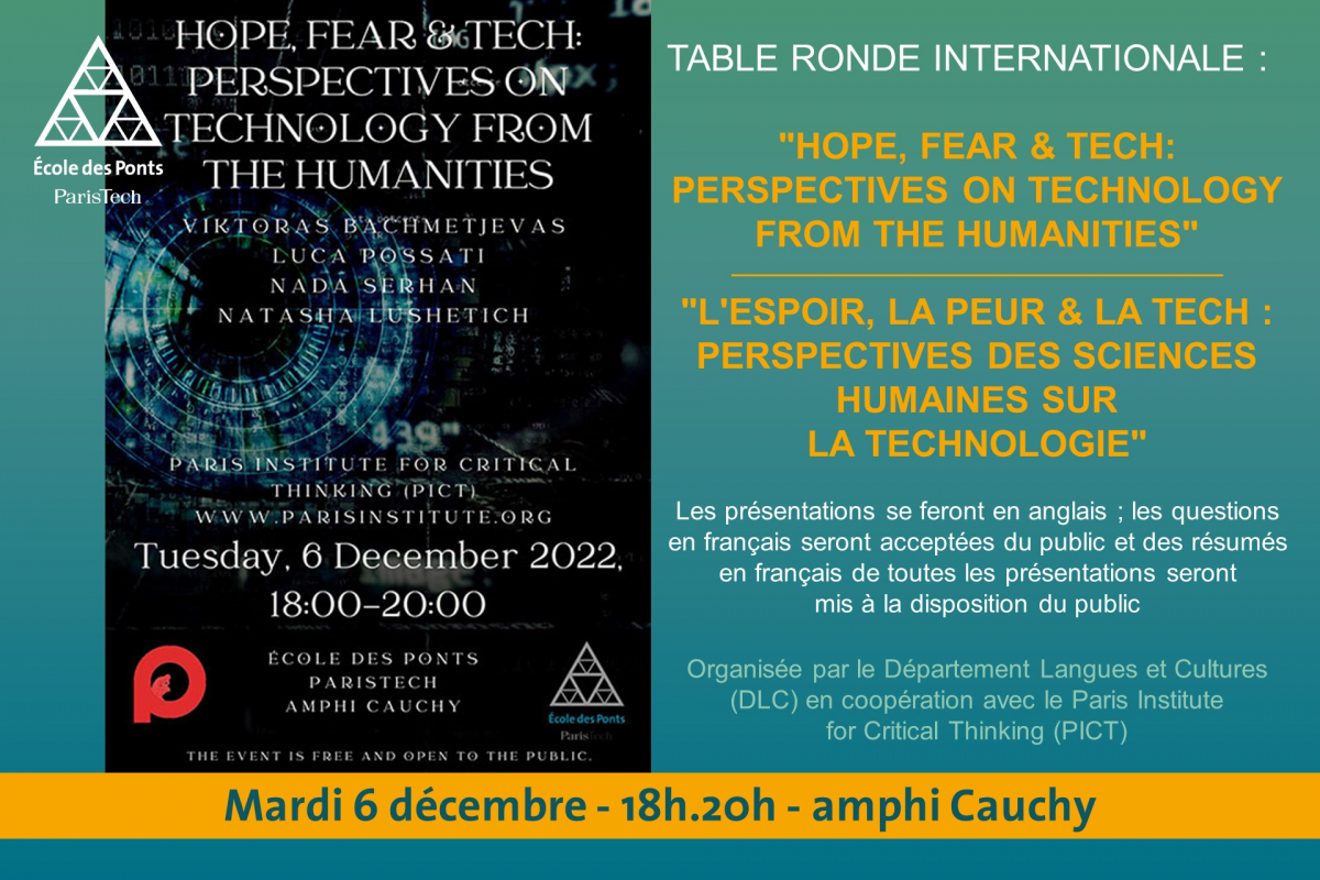 Une table ronde organisée par le Département Langues et Cultures de l'École nationale des ponts et chaussées et par le Paris Institute for Critical Thinking (PICT).