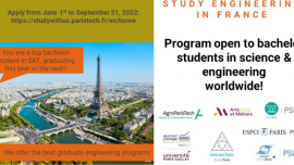 Les 7 écoles de ParisTech lancent leur campagne de recrutement d’étudiants internationaux 2022. Après avoir ouvert le programme en Asie, ParisTech a décidé de donner l’opportunité aux étudiants de tous les continents de postuler pour entrer en deuxième année du cycle ingénieur.
