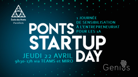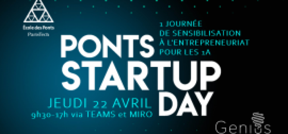 L’École nationale des ponts et chaussées a organisé jeudi 22 avril 2021 la 2ème édition du Ponts Startup Day, événement phare de son dispositif de sensibilisation à l’entrepreneuriat, avec le concours du Pôle Innovation & Design et Genius Ponts.