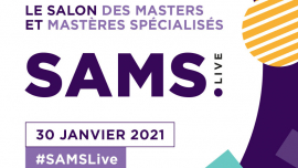 Cette année, le Salon des Masters et des Mastères Spécialisés (SAMS), vous donne rendez-vous le 30 Janvier 2021, pour une toute nouvelle expérience digitale !