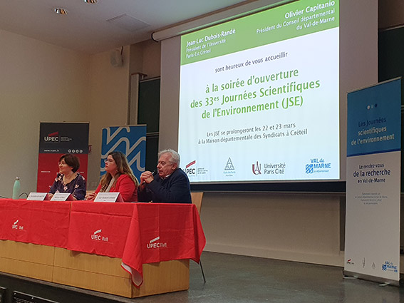 Les Journées Scientifiques de l'Environnement ont débuté par un événement grand public, le 21 mars 2022 à 19h, en présence de Jean-Luc Dubois-Randé, président de l'Université Paris-Est Créteil et Mélanie Nowak, Conseillère départementale déléguée.