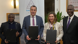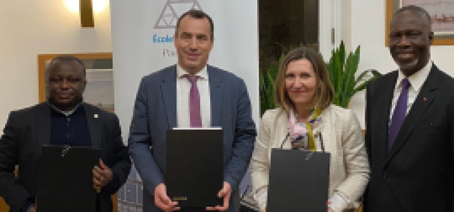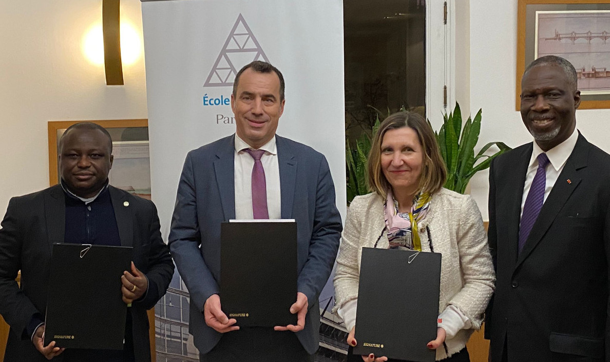 C’est à la Maison des Ponts et en présence de SEM Maurice Bandaman, Ambassadeur de Côte d'Ivoire en France, qu’a été signée une convention de coopération internationale inédite entre l’École nationale des ponts et chaussées, l’Institut National Polytechnique Félix Houphouët-Boigny (INPHB) en Côte d’Ivoire et la Conférence des grandes écoles (CGE) le 4 février 2022.