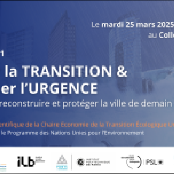 En partenariat avec le Programme des Nations Unies pour l’Environnement, la Chaire Économie de la Transition écologique urbaine organise son premier séminaire scientifique : "Penser la Transition et anticiper l’Urgence - Réinventer, reconstruire et...