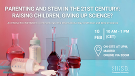 Following the success of the first EELISA public roundtable “Women who make science happen” (February 2022) and in the context of the celebration of the International Day of Women and Girls in Science (11th of February), EELISA presents the II EELISA Roundtable “Parenting and STEM in the 21st Century: raising children, giving up science?”, on 10 of February from 10 AM to 1 PM (CET) - 9:30 AM (CET) for on-site participants.