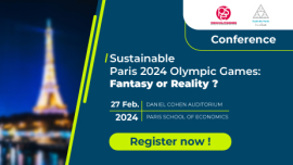 École nationale des ponts et chaussées, Paris School of Economics and the Master of Science Sustainable Impact Analysis Student Association organise the "Sustainable Paris 2024 Olympic Games : Fantasy or Reality?" conference: