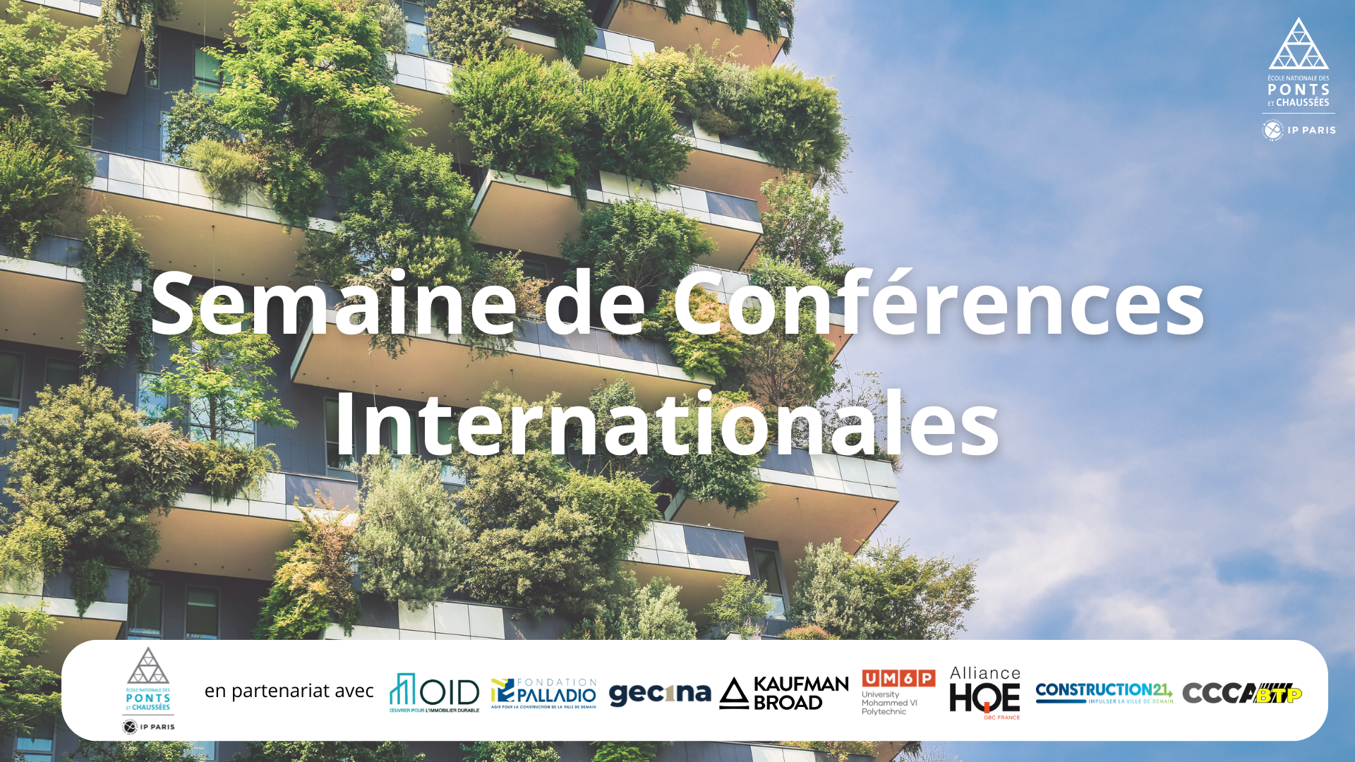 La semaine de conférence internationale "Stratégie Neutralité Carbone dans le bâtiment et l'immobilier à horizon 2050" est prévue du 16 au 20 février 2026. Cet événement est organisé en commun avec le Mastère Spécialisé® Immobilier et Bâtiment Durables.