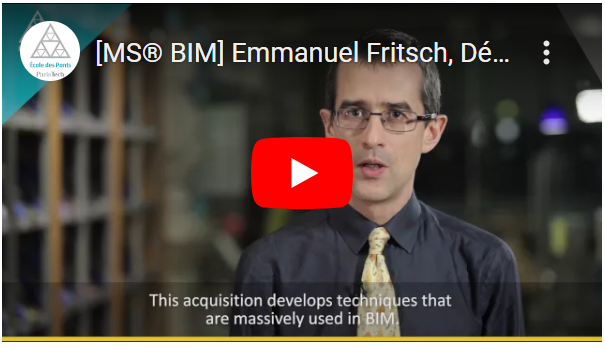 BIM, conception intégrée et cycle e vie du bâtiment et des infrastructures : À l’heure où le BIM commence à se généraliser dans les différents domaines et métiers de la construction, la formation de l’ensemble des acteurs du projet s’avère plus que jamais nécessaire. En réponse à cette nécessité, L’École nationale des ponts et chaussées et l'ESTP, proposent le Mastère Spécialisé BIM, créé en 2014 en association avec Arts et Métiers ParisTech, Géodata Paris (anciennement École Nationale des Sciences Géographiques), le Centre Scientifique et Technique du Bâtiment (CSTB), les écoles d’Architecture de Marseille, Toulouse et Paris Val-de-Seine et ECOTEC.