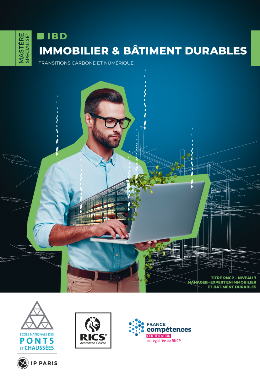Créé en 2011 dans le contexte du Grenelle de l’Environnement, avec un centrage sur les performances énergétiques et environnementales, le Mastère Spécialisé® Immobilier et Bâtiment Durables (IBD), Transitions Carbone et Numérique, pour mieux répondre aux besoins des entreprises privées et du secteur public, prend la mesure de l’importance de la transition des énergies fossiles et fissile vers les énergies renouvelables et de l’impact considérable de la révolution numérique. Il s’inscrit dans le bouleversement en cours des processus de construction, rénovation et gestion de l’immobilier et du bâtiment : innovations technologiques, organisationnelles, financières, BIM (bâtiment et information modélisés), big data, arrivée de nouveaux acteurs issus du digital.