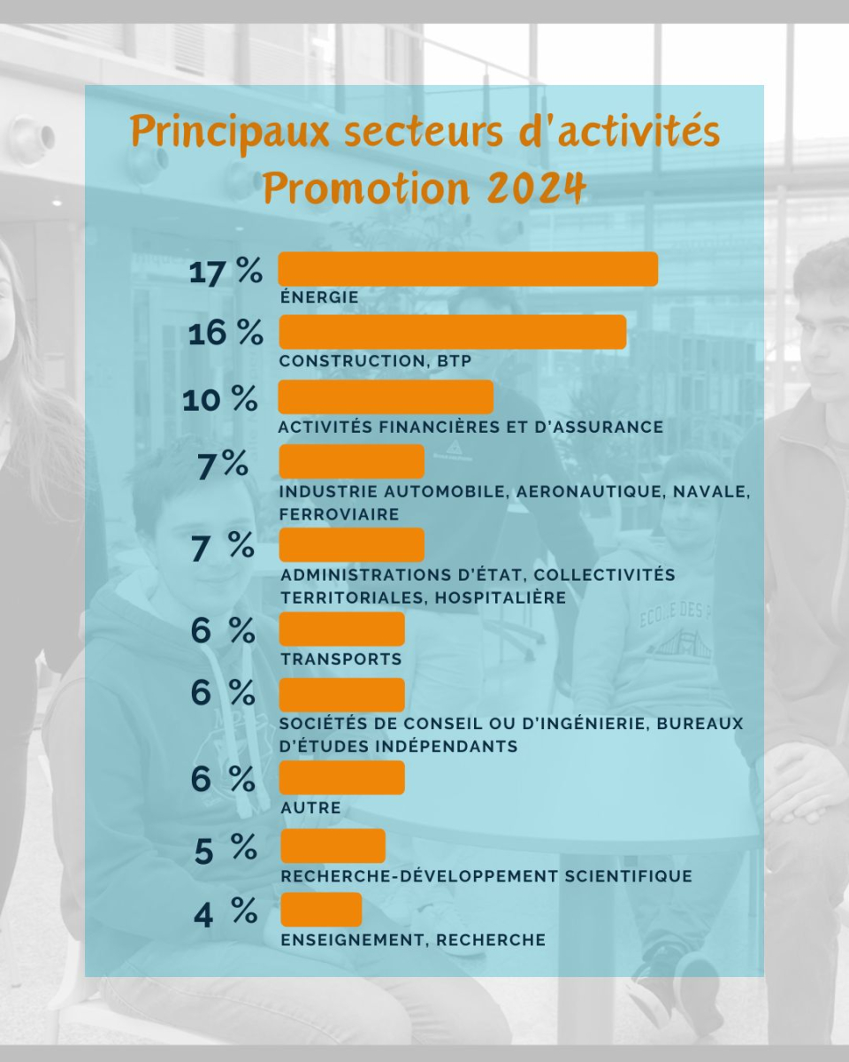 Avec un taux d'insertion à 6 mois de 96 %, les diplômés de l’École bénéficient d'une excellente insertion professionnelle, certains trouvant notamment leur premier emploi par l’intermédiaire du projet de fin d’études et du stage long, mais également en s’appuyant sur le large réseau de l’École.