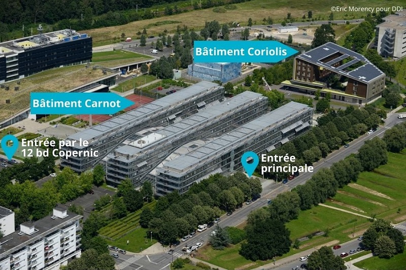 Information aux visiteurs : l'accès peut s'effectuer par le 12 boulevard Copernic et par le 6/8 avenue Blaise-Pascal (entrée principale).